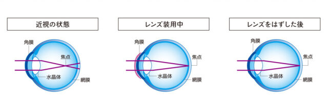 主に近視や軽度の乱視に効果があり、日中はレンズを装用せずに生活することができます。